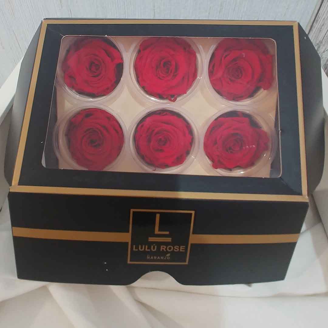 Caja de 6 Rosas Rojas Preservadas LÚLU ROSES.