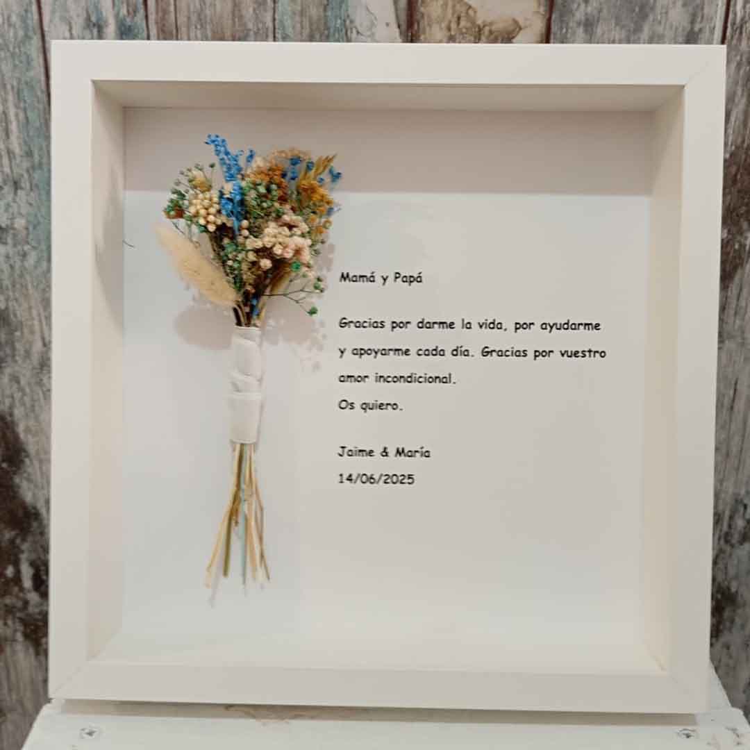 Transforma tus recuerdos más preciados en arte con el Marco de Madera de La Peana Taller de Flores. Nuestros marcos personalizados son ideales para destacar momentos especiales con un toque único de elegancia y personalización.
